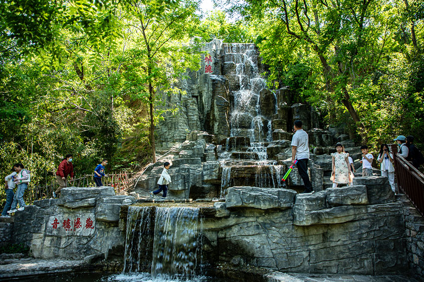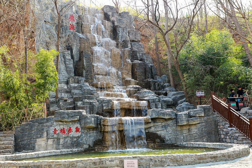 凤浴瀑,高19米,宽 11米,是凤凰台水系中较高的一处瀑布。凤浴瀑高耸壮观,观瀑听音,音如弦乐,仰面看去,水花在阳光下如银花天上来,心悦畅快。据说,凤浴瀑是凤凰洗浴的地方,用这里的水洗浴、洗手,会养颜美肤、带来吉祥和好运。